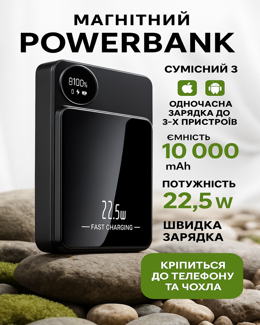 ✔ Підтримує бездротову зарядку iPhone 12 та новіших